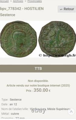 Roman Coin Sestertius HOSTILIAN R3 very Rare In its current state. I am open to reasonable offers, please thank you. As mentioned, a sestertius from the year 12 is infinitely rarer.