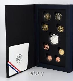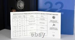 The set consists of a series of 9 coins (1 cent, 2 cents, 5 cents, 10 cents, 20 cents, 50 cents, 1 euro, 2 euros, and 20 euros silver 2022) in proof quality issued by the Paris Mint in 2022. VERY RARE COLLECTOR'S SET?? A certificate of authenticity numbered (n°1474) is included with this magnificent official set.