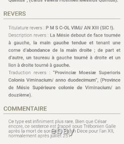 Monnaie Romaine Sesterce HOSTILIEN R3 très Rare En L'état. Je laisse la possibilité de faire des offres ouverte en restant cohérent svp merci. Comme le mentionne une sesterce de l'an 12 infiniment plus rare.