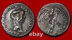Denier de Claude (41-54 ap J-C), 18mm, 2.00g, en argent (fourré). Revers : Victoire marchant vers la droite, tenant un caducée de la main gauche et touchant son visage de la droite. Devant elle, un serpent / PACI AVGVSTAE. Note : Un certificat d'authenticité sera livré avec la monnaie.